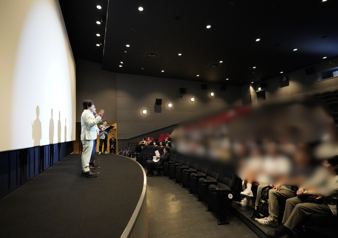シアター1つをシンニホンで貸切にし、広々としたスクリーンと座席が印象的な空間でした。